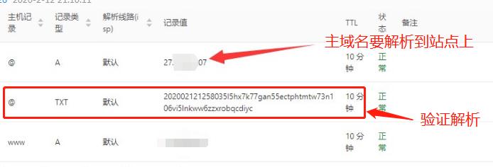 • DNS记录验证(TXT)